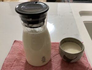 1度で800mlもの大量の豆乳ができます。ちょっっと多いけど、味はバッチリおいしいです。もちろん,豆腐屋さんで時々買っている豆乳のにのはかなわないのですが、